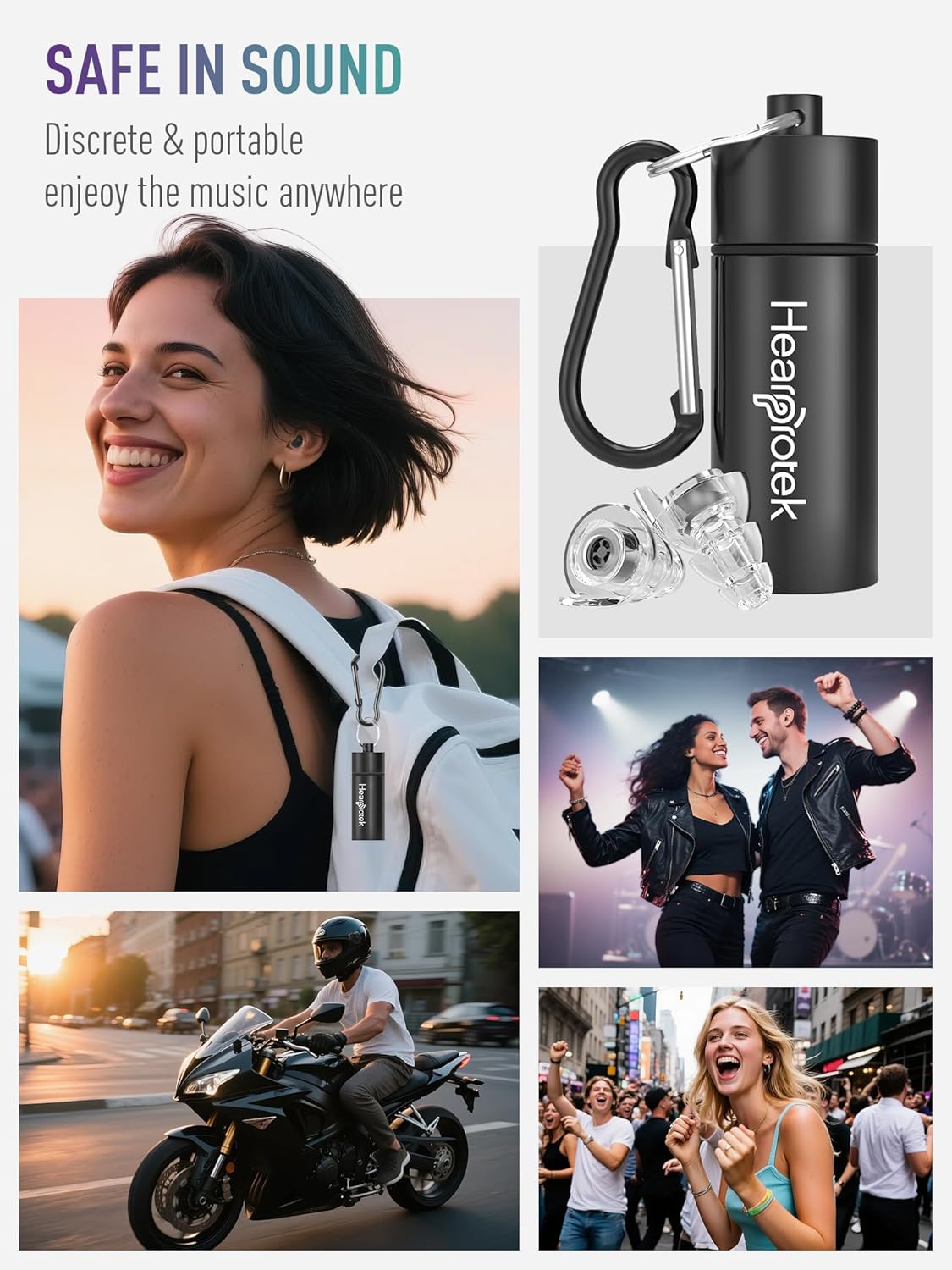 Hearprotek Ear Plugs for Concerts, 2 Pairs Silicone high Fidelity Noise Reduction earplugs Festival Essentials Hearing Protection for Musicians Rave Music Motorcycle Drums Percussion Flight Tinnitus