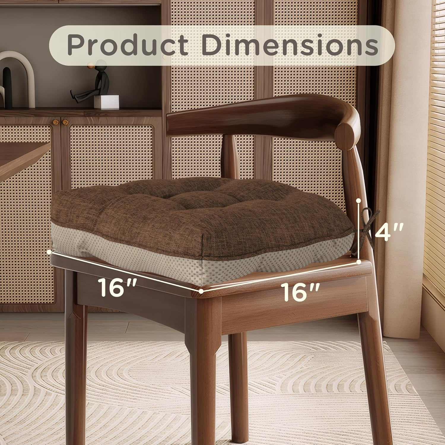 Perfect Dimensions: Measuring 16 x 16 inches in size and 4 inches in thickness, this chair cushions for dining chairs is designed to fit most standard dining chairs perfectly. It offers just the right amount of cushioning to make your dining experience more comfortable. From the dining chairs in your home kitchen to those in a small bistro-style eatery, this chair pad is a versatile addition.