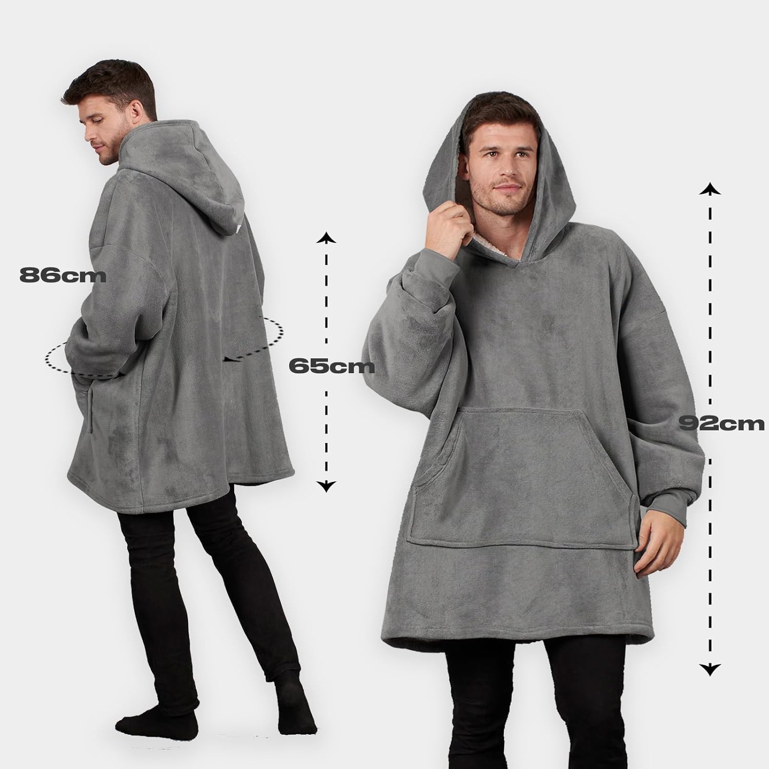 Oversized gray hoodie with large hood, featuring plush warm material, large pocket, and elasticated cuffs. Lightweight and machine washable.Oversized gray hoodie with large hood, featuring plush warm material, large pocket, and elasticated cuffs. Lightweight and machine washable.